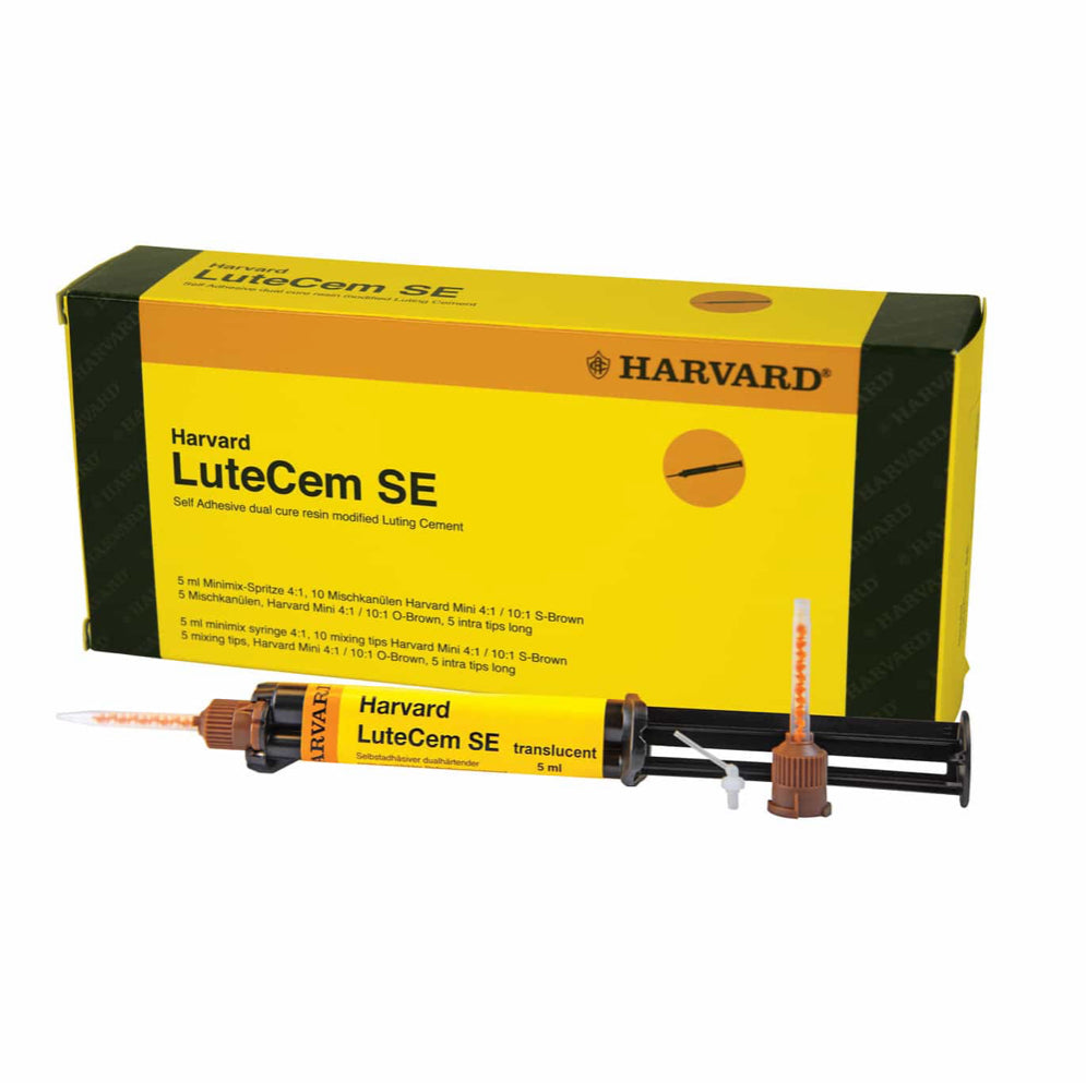 Harvard LuteCem SE ist ein harz-verstärkter, dualhärtender Befestigungszement für permanente Befestigungen. Der Befestigungszement eignet sich zur dauerhaften Eingliederung von Restaurationen aus Metall, Metallkeramik, Zirkonoxid sowie Vollkeramik. Harvard LuteCem SE ist selbstadhäsiv und ermöglicht die Eingliederung ohne zusätzliches Ätzen und Bonden der Zahnsubstanz.