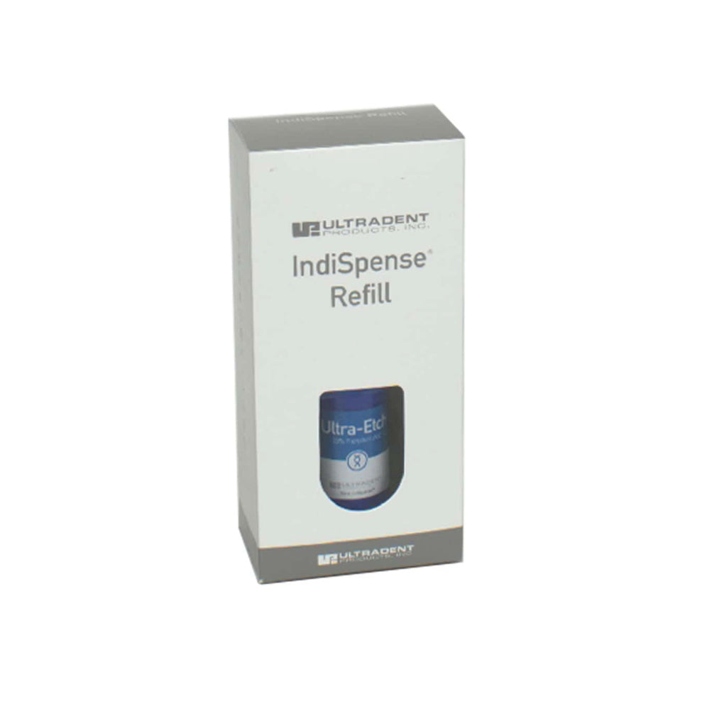 Ultra-Etch Indispense von Ultradent ist einÄtzpräparat mit 35 % Phosphorsäure und eignet sich sehr gut zur Dentin- und Zahnschmelz-Ätzung. Das gut fließfähige Etch lässt sich ausgezeichnet in okklusalen Fissuren platzieren und ist dennoch viskös genug, um ein Ablaufen zu verhindern. Die Einwirkzeit beträgt nur 20 Sekunden und das Material kann durch leichtes Abspülen wieder entfernt werden. Somit kann die Behandlung schnell fortgesetzt werden. Aus der praktischen 30 ml Indispense-Nachfüllspritze können die kleinen 1,2 ml Spritzen ganz leicht nachgefüllt werden.