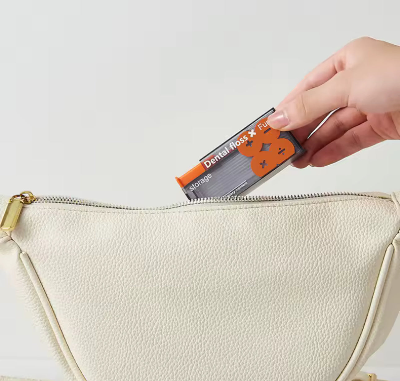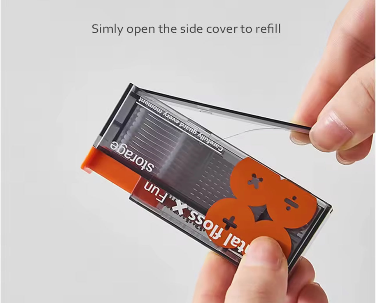 Die kompakte Box mit Druckmechanismus gibt jeden Stick einzeln aus, schützt sie vor Schmutz und passt perfekt in Handtasche, Rucksack oder Reisetasche. Einfach drücken, Zahnseide-Stick entnehmen und losputzen.